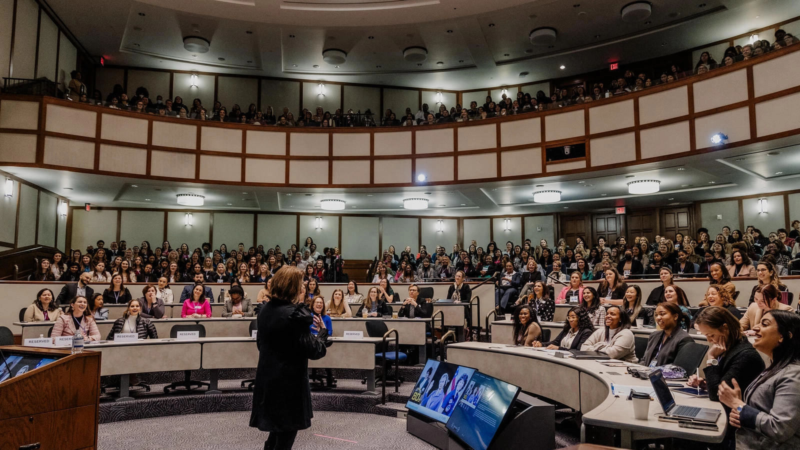 $15,000-per-ticket conference. Pharmaceutical executives taking frantic notes.
